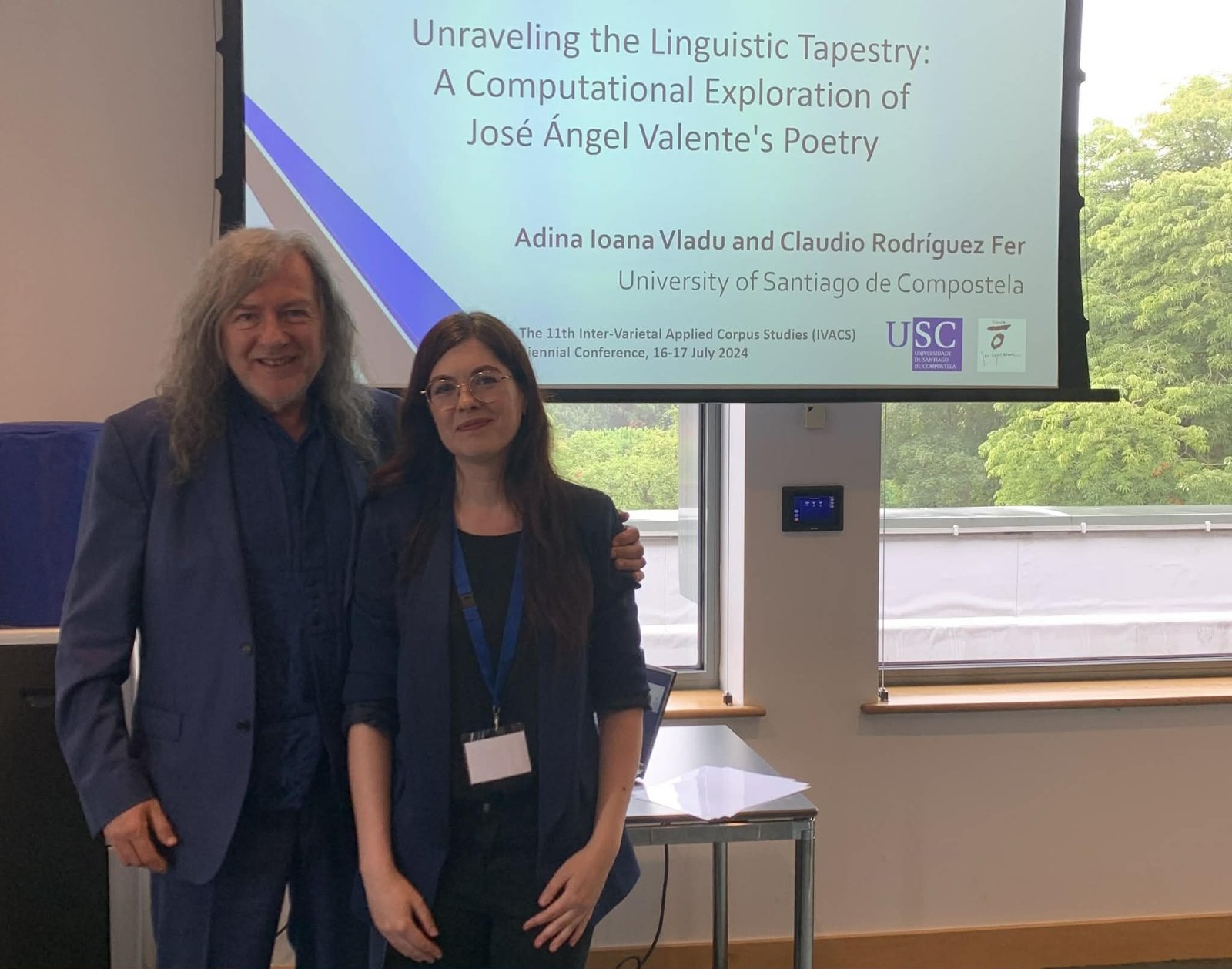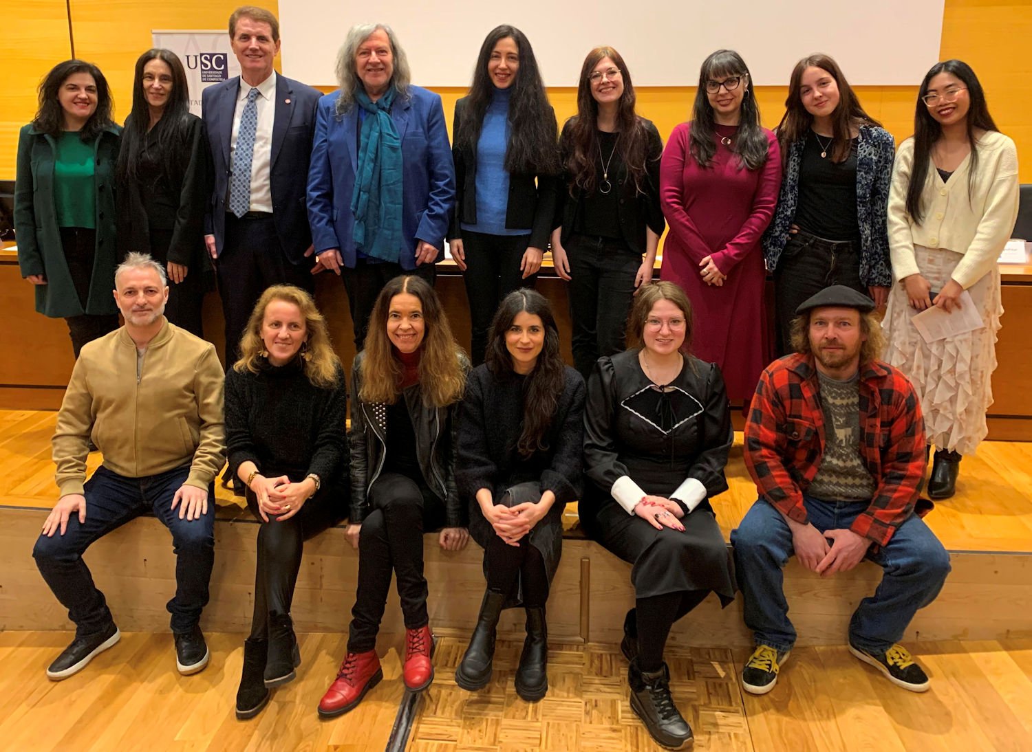 Marinaj’s remarks, delivered in English, were made accessible through Galician translation projected by Elsa González Álvarez, vice-dean for culture and an English studies professor, with additional Galician interpretation by Apolinar. An upcoming issue of Mundus Artium, the press’s literary magazine, will include coverage of the award, including an interview with Rodríguez Fer translated into English by Adina Ioana Vladu.